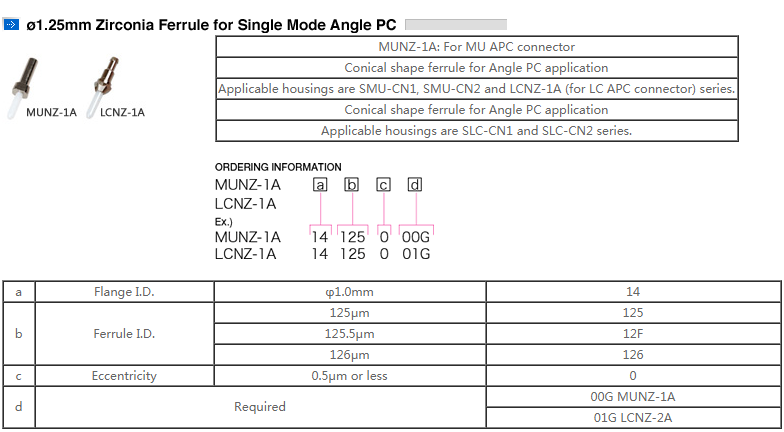 1.25mm Zirconia Ferrule for Single Mode Angle PC